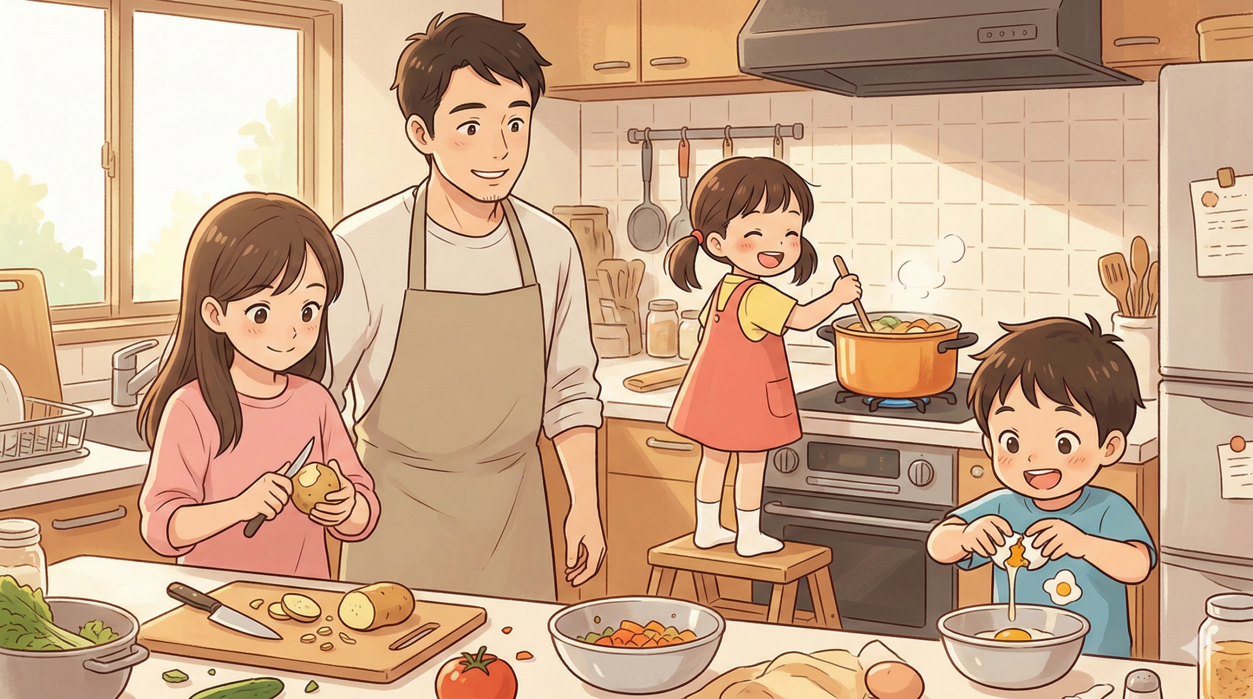 驚いたのは、長女の成長。 小5の彼女が黙々とじゃがいもの皮をむく姿。 「いつの間にか、こんなに頼もしくなっていたなんて」 普段あまり見ることのない娘の姿に、胸が熱くなりました。